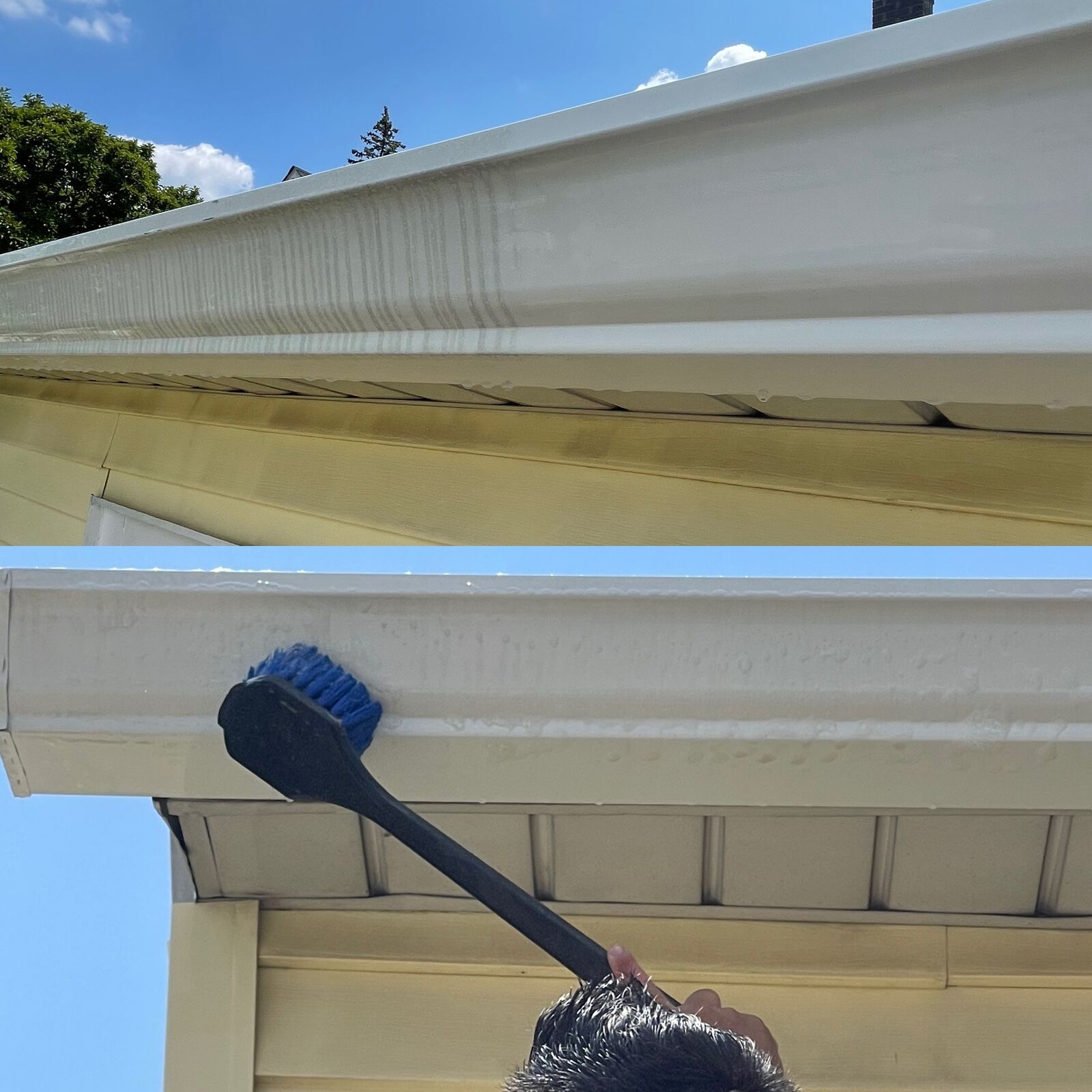 Revive dull gutters with our professional gutter brightening service. Our skilled cleaners use latest techniques, equipment and a special chemical to remove buildup and restore brightness. Improve curb appeal, increase property value, and enhance gutter functionality with a bright and clean look all year round.
